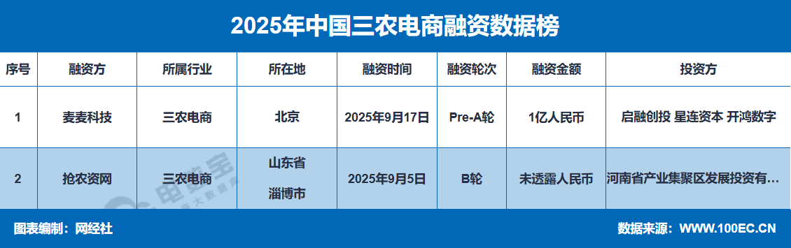据“电数宝”电商大数据库显示,2025年,国内三农电商范畴生了2起投融资事务,涉及的公司包罗:麦麦科技、抢农资网,融资总金额为1亿元。抢农资网母公司河南农要电子商务无限公司,完成2000万B轮融资,投资方为河南省财产集聚区成长投资无限义务公司。此次河南省财产集聚区成长投资无限义务公司的投资有帮于扩大就业,支撑农资电商行业成长,处理企业“融资难,融资贵”问题。本轮投资,将加快抢农资网成长,帮帮企业提拔客户体验和市场拥有率。