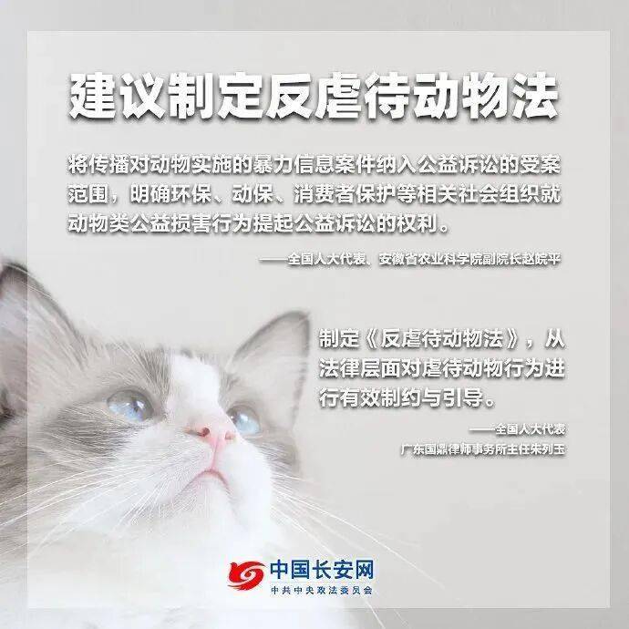 其时不止赵皖平,社会都有人士起头呼吁为动物立法。好比中南财经大学院的钱叶芳传授,就是从2017年起头系统性关心国内动物相关法令,持续呼吁成立特地的动物保;全国代表、广东国鼎律师事务所从任朱列玉,也是从2017年起头提交相关,呼吁制定物法。正在那两年,有不少旧事报道,以、动物做为案例,切磋对动物生命权益的注沉,能否该当正在标准之外,进入法令范围。