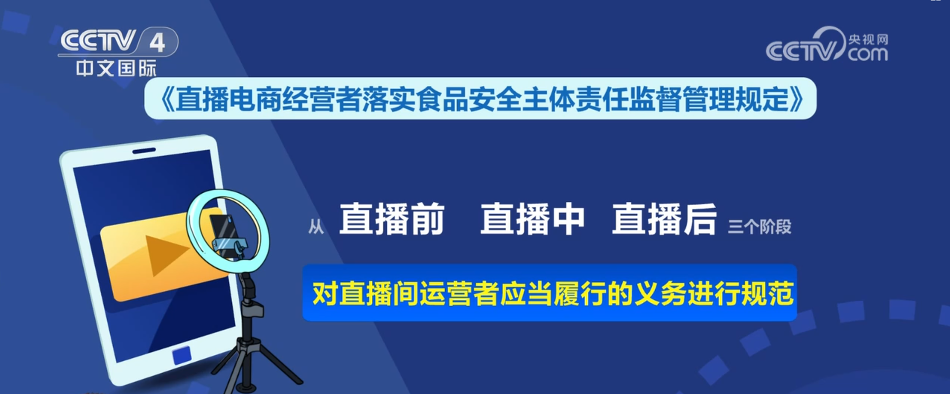 即将发布的《曲播电商落实食物平安从体义务监视办理》将明白曲播电商各相关从体的食物平安义务,规范运营行为、强化监管办法、更好防备食物曲播勾当中的食物平安风险。