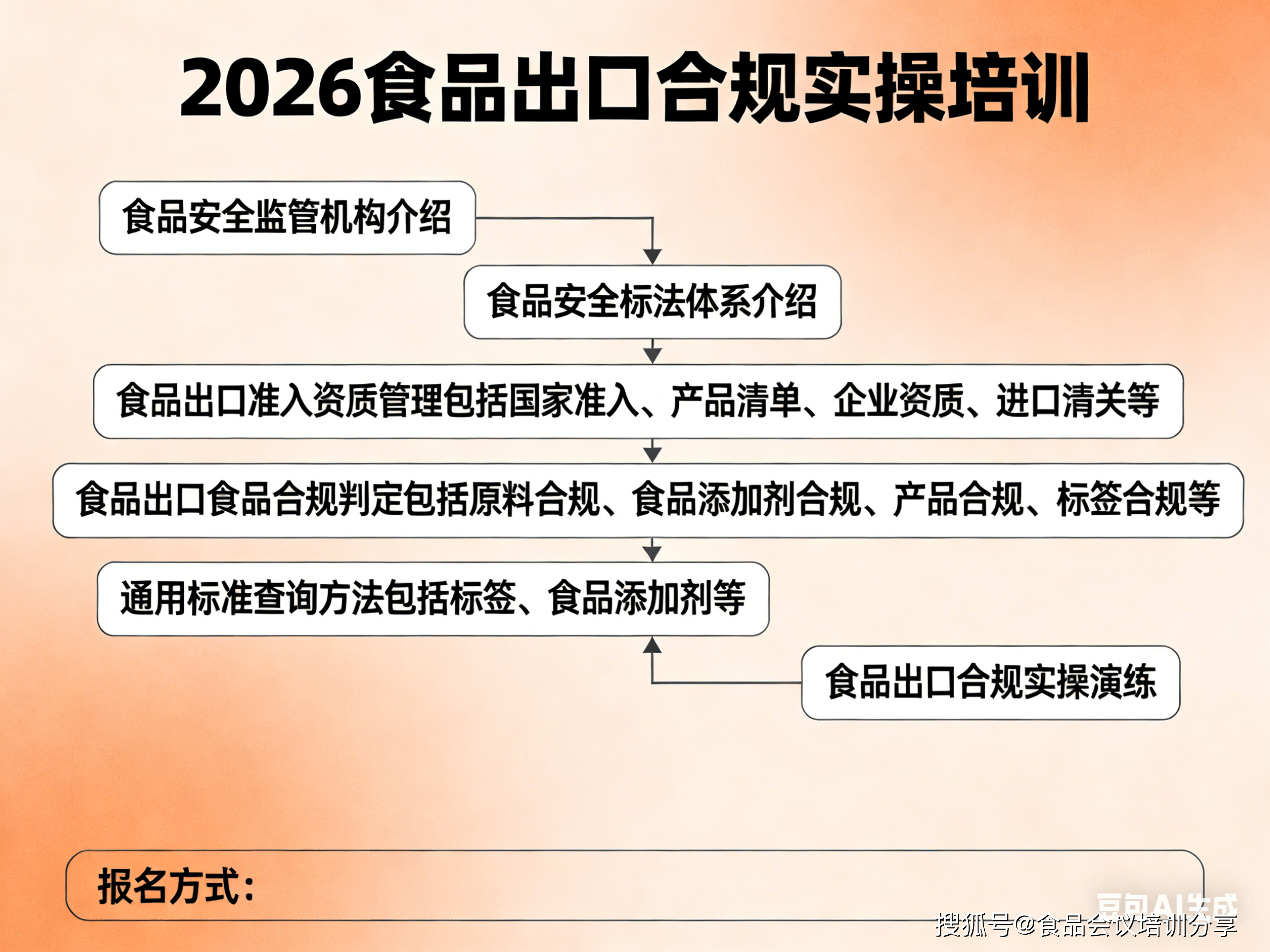 近年来,我国外贸成长势头强劲,已成为世界次要食物出口国之一。跟着全球化的加快和国际商业的深化,因而,提拔食物出口企业的合规认识和能力,对于保障我国食物出口的不变增加具有主要意义。为帮帮食物出口企业能更好领会各出口国的律例政策和监管要求环境,熟知食物出口流程,为此,食物伙伴网将举办“食物出口合规实操培训暨食物出口东南亚合规实操专项培训”,为食物出口人供给一个进修和交换的平台!