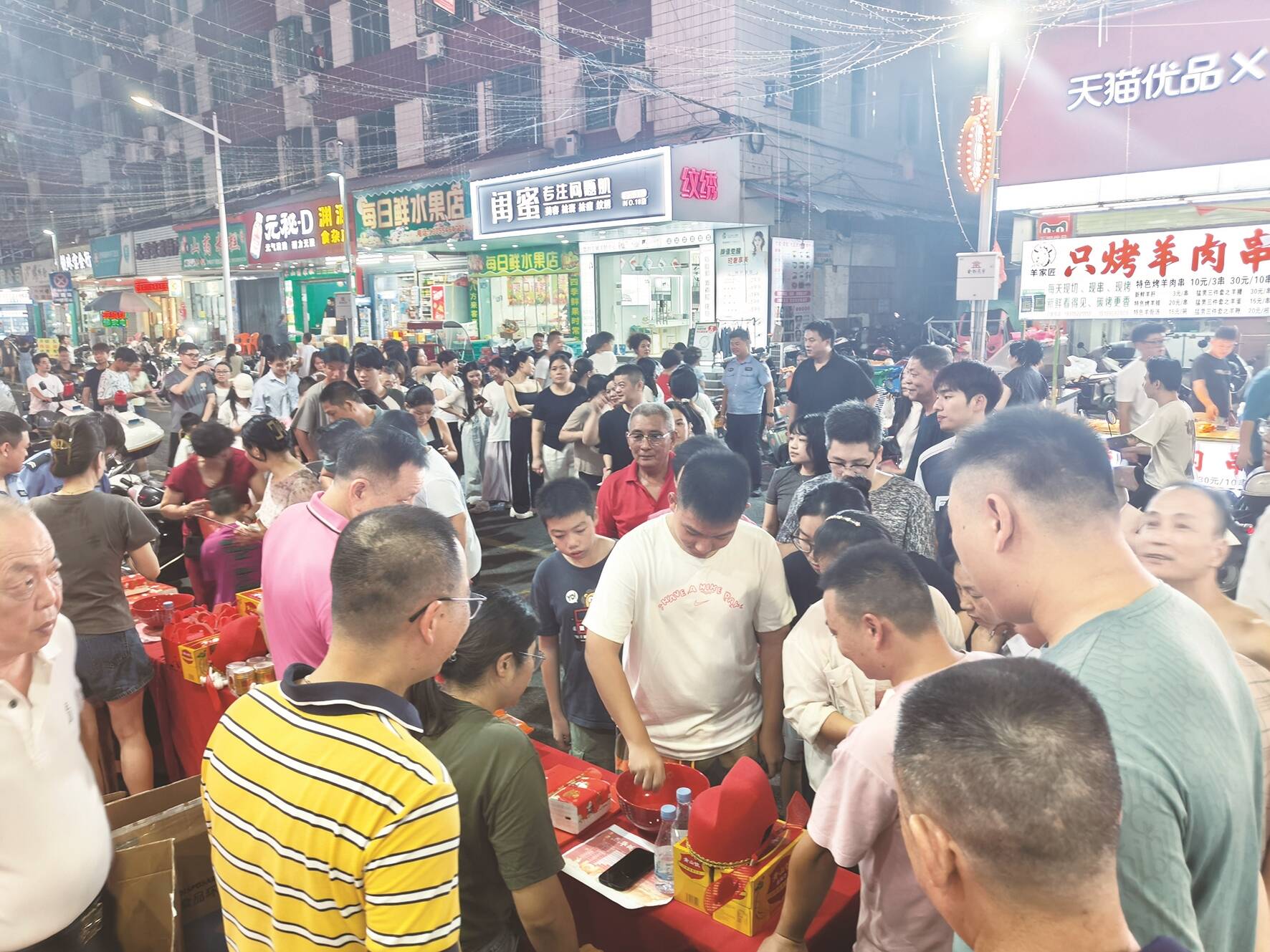 10月6日晚上,金相夜市自始自终热闹不已。乐正在中秋”从题博饼勾当正在此欢喜举行,既营制了喜庆的节日空气,也为夜市注入消费新活力。